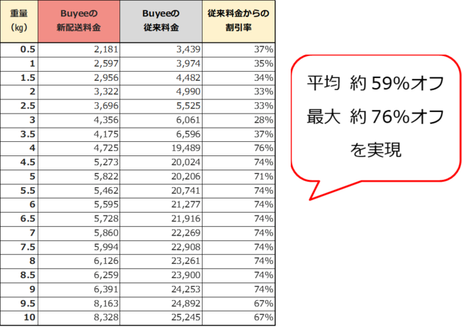 (※)2021年2月現在、BEENOS調べ。実重量計算時の金額を記載。従来料金に関しては2021年2月17日までの料金を記載