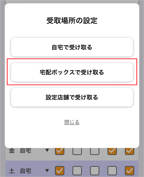 (3)曜日ごとに受け取り方法を事前に設定できる「Myカレンダーサービス」の機能拡充インターホンが鳴ることなく、いつも自宅の宅配ボックスで受け取れますこれまでの自宅(対面配達)か店舗(コンビニエンスストアなどの取扱店やPUDOステーション、ヤマト運輸直営店)の2つに加え、「Myカレンダーサービス」の受け取り場所の選択肢に自宅の宅配ボックスを追加しました。宅配ボックス指定の荷物は、ドライバーがインターホンを鳴らさずに宅配ボックスに配達します。