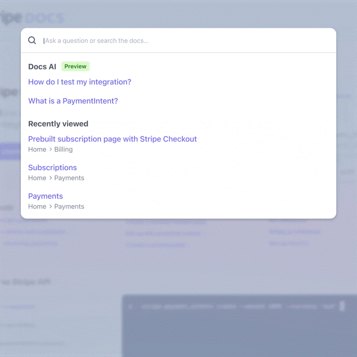 このドキュメント強化により、開発者は Stripe Docs 内で自然言語クエリを GPT-4 に提示できるようになり、GPT-4 はドキュメントの関連部分の要約を作成したり特定の情報の抽出をしたりして回答することが可能になります。これにより、開発者はドキュメントを読むことに使っていた時間を減らし、システム構築に宛てる時間を増やすことができます。