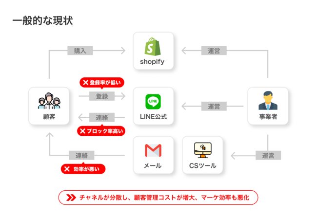 購入行動だけでなく、過去の注文履歴・配送状況・注文キャンセルなど、Shopifyページまたはメール問い合わせでしか解決できなかった行動がLINEのみで完結できるように。これにより、顧客のストレスも顧客対応コストも削減でき、売上につなげることもできます。