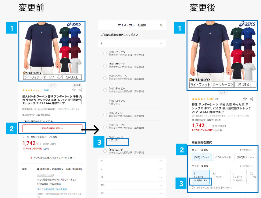 楽天市場商品ページのUI変更前と変更後