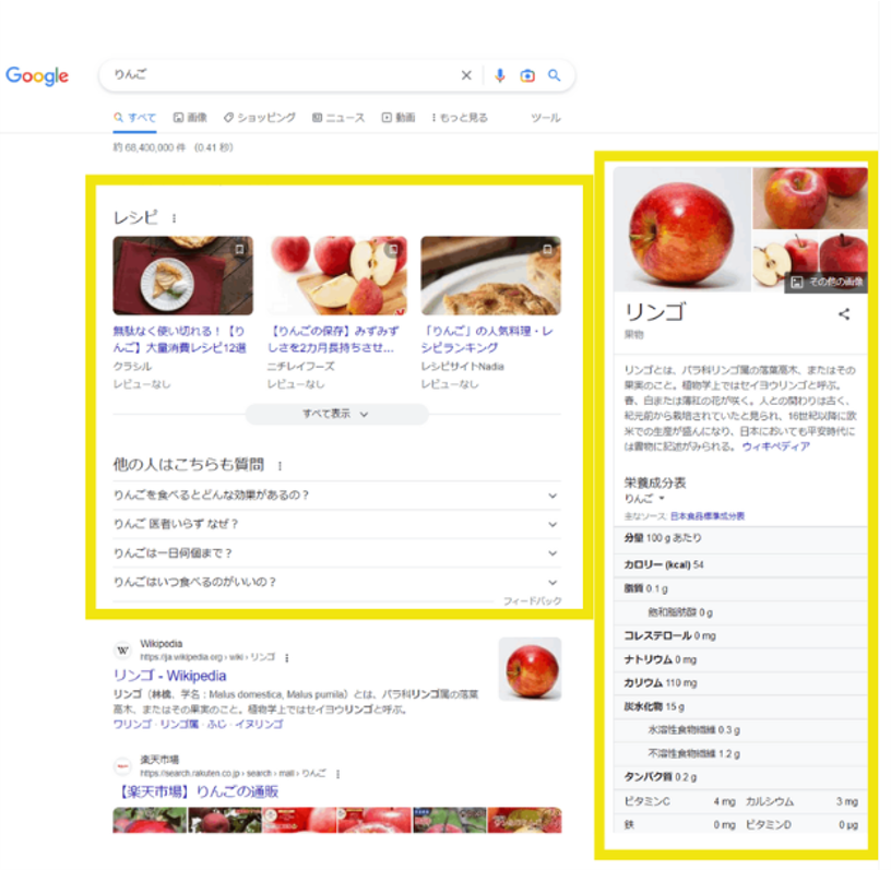 ※ユニバーサルサーチは2007年より段階的に提供が開始されました。以下のキャプチャの黄色線部分のような枠のことを指します。