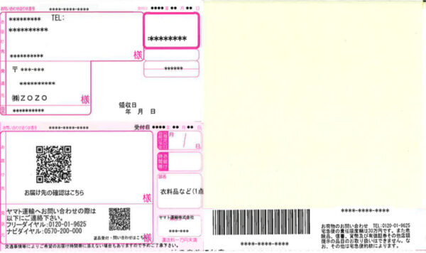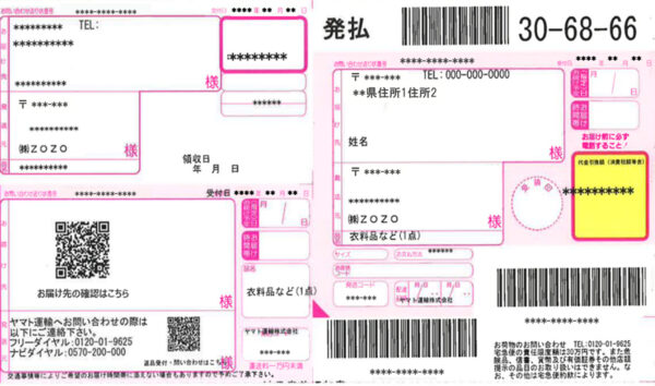 ※荷物に貼付されている配送伝票は、お客さまへの配達時に、EAZY CREWなどによって右側の配達票部分が剥がされた状態となるので、「置き配」された荷物から、第三者が目視で個人情報を判別することが出来なくなります。