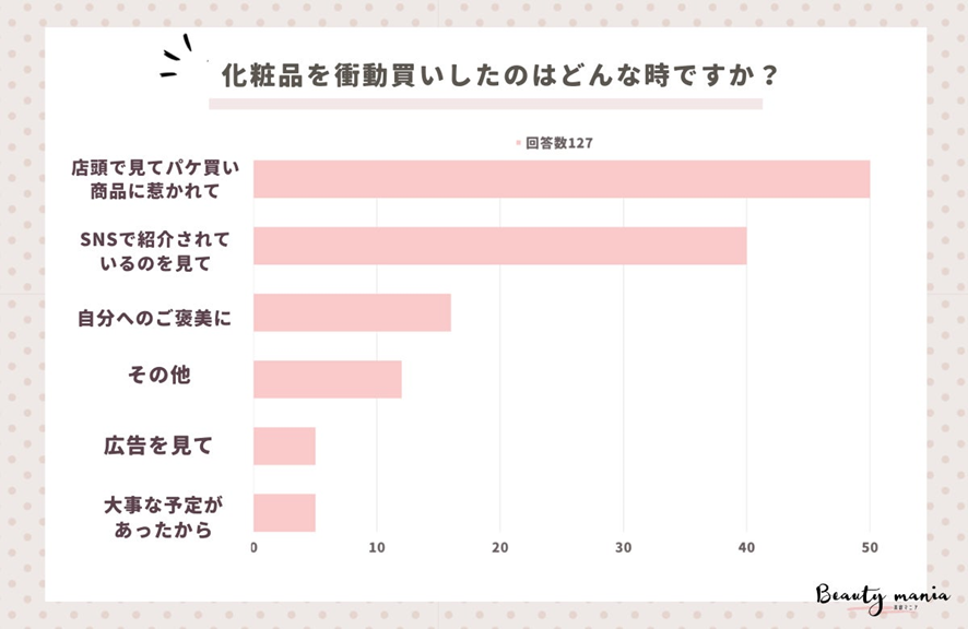 5位 <調査レポート>化粧品を衝動買いしたのはどんな時?1位は「店頭で見てパケ買い・商品に惹かれて」