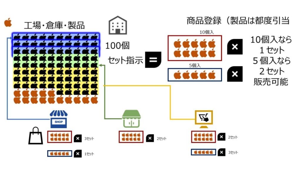 店舗と倉庫と工場の在庫と、各マーケットプレイス、自社コマースサイトで活用