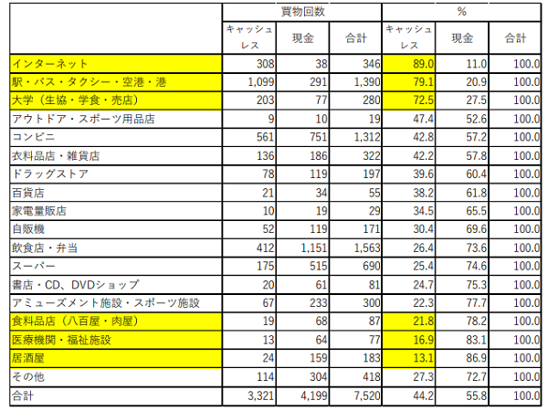 購入場所から見るキャッシュレス決済の比率