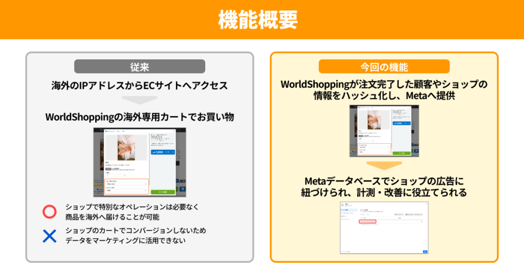 (3)海外顧客の購買データをMeta広告にハッシュ化して戻す