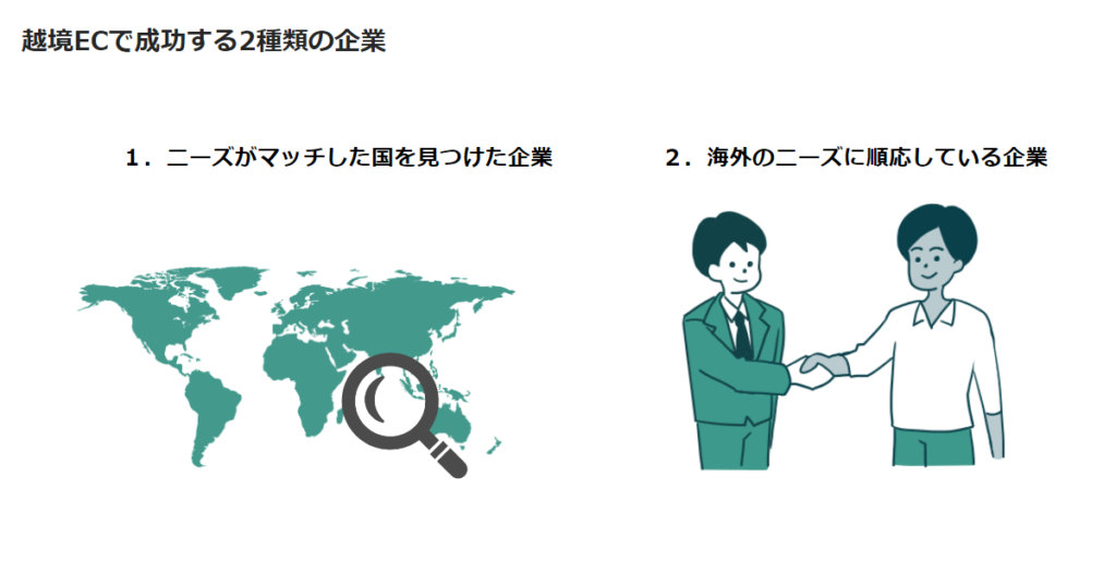 越境ECに挑戦するといっても既存の商品を販売するケースから海外を意識したモノづくりをするケースまで幅広いです。海外で成功する企業は、