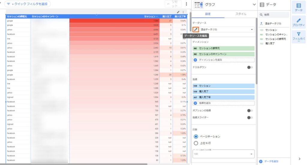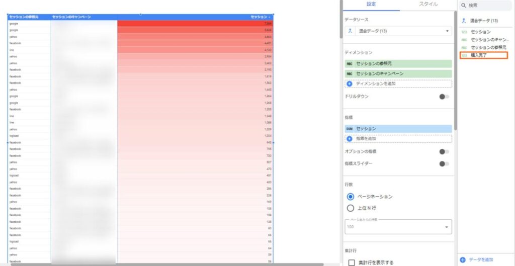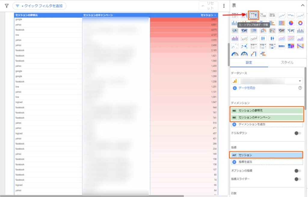 表の種類はなんでも良いのですが、個人的にはヒートマップ付きデータ表が見やすいのでおすすめです。