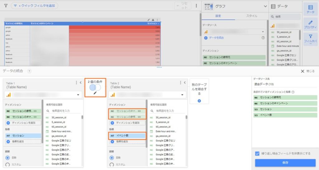 table2の「イベント数」の表記を実際のイベントの名前に変更しておくと後々わかりやすいので、ぜひ設定しておきましょう。