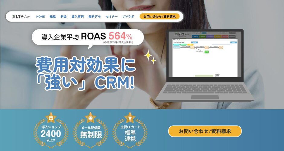LTV-labは、費用対効果に優れたCRMツールです。導入後の費用対効果は平均564%と非常に高くなっています。