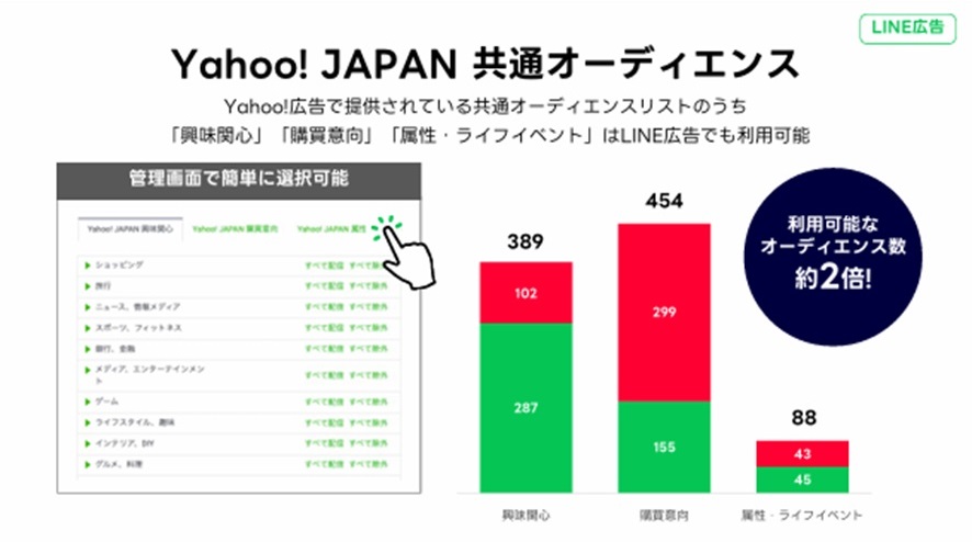 富岡さん:共通オーディエンスはYahoo!広告でもともと提供していた機能で、LINE広告でも利用できるようになった形です。とくに「購買意向」がとても使えるようになっています。