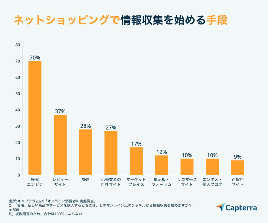 参考:【2024年オンライン消費者実態調査】オンラインショッピングの際の情報収集、SNSを利用が28%