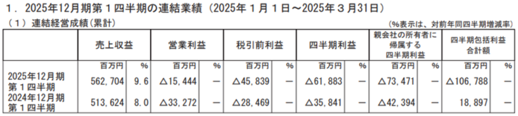2025年5月14日に発表された楽天グループ株式会社の2025年第1四半期決算(対象期間:2025年1月〜3月)では、売上収益が過去最高を記録した反面、最終損失は前年よりも拡大したことが明らかになりました。