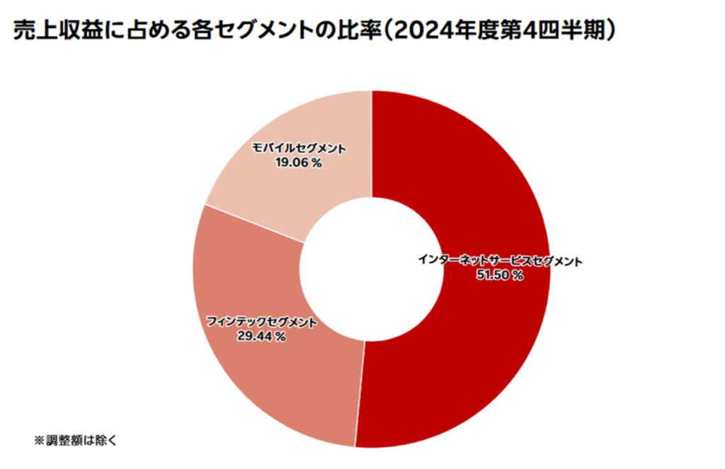 楽天市場を含む「インターネットサービスセグメント」は、楽天グループ全体の売上の約半分を担う基幹セグメントです。