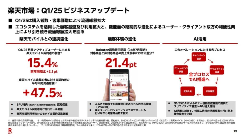 2025年Q1決算では、楽天市場が今後強化していく具体的な施策として以下の3点が挙げられました。