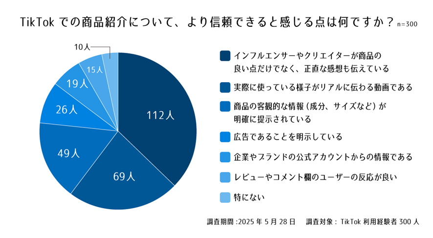設問7. TikTokでの商品紹介について、より信頼できると感じる点は何ですか?