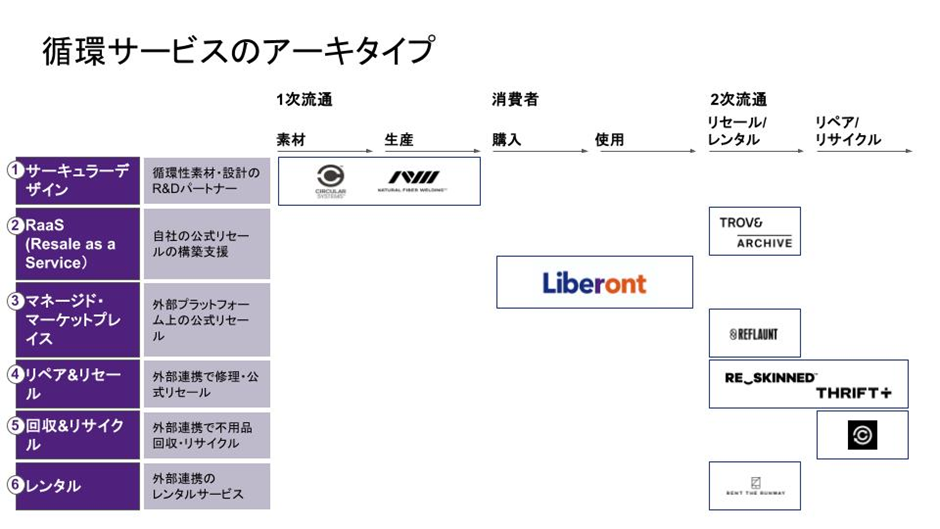 これらの循環型サービスは、そのアプローチによって6つのタイプに分類できます。