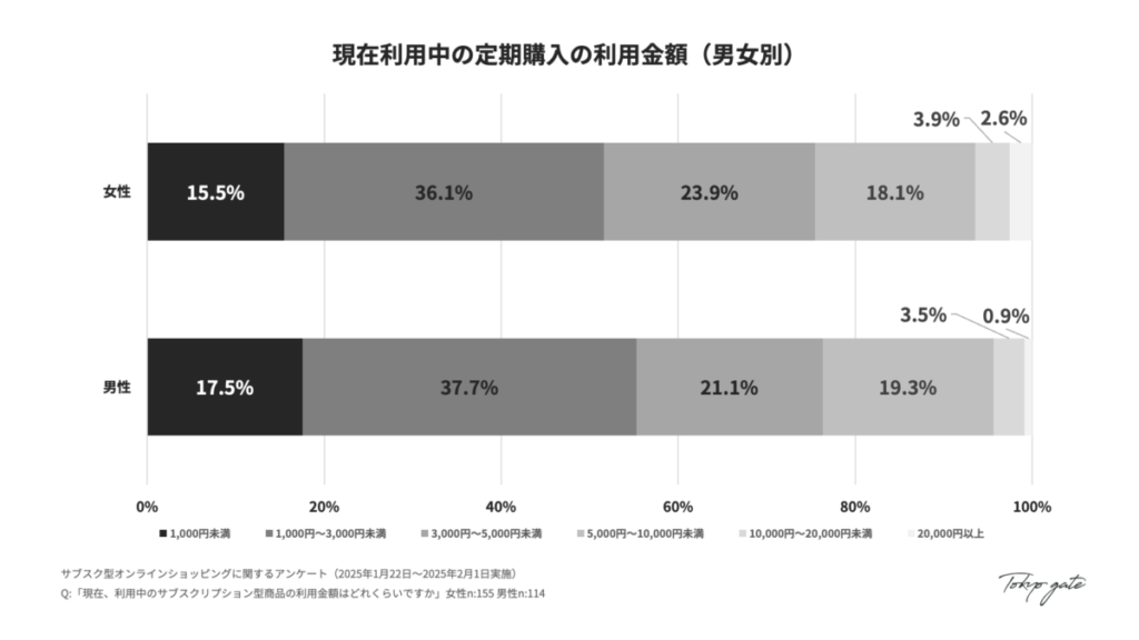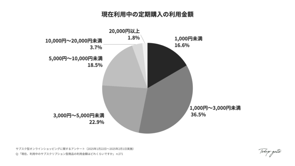 - 75%以上のユーザーが、定期購入に費やす金額は月間5,000円未満と回答しました。
