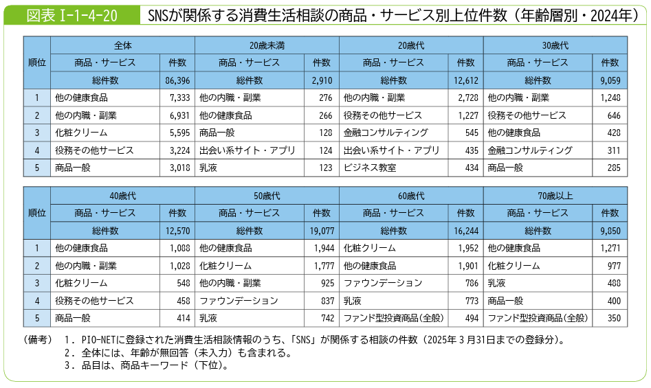 SNSや通販で拡がる新手のトラブル:世代で異なる被害の特徴も