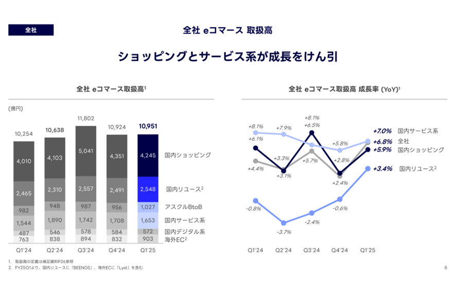 コマース事業:ZOZO・アスクルにけん引され増収、EBITDAは一時益の反動で減益