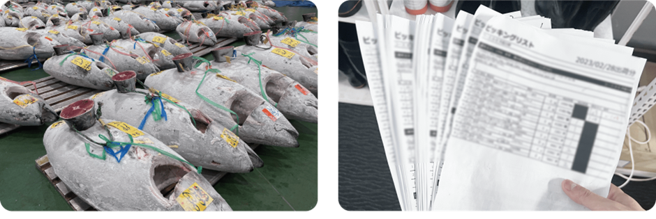 - 仕入れた魚の情報は紙でメモされ、別の担当者がその情報をPCに入力するなどアナログな業務があり、ヒューマンエラーが起きやすい状況があった