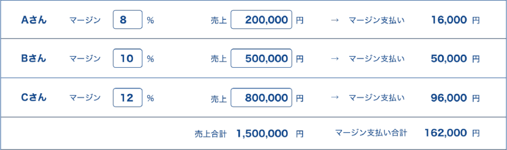 ⇒⾃動事務処理:売上確認からマージン振込まですべての事務処理を自動完結。