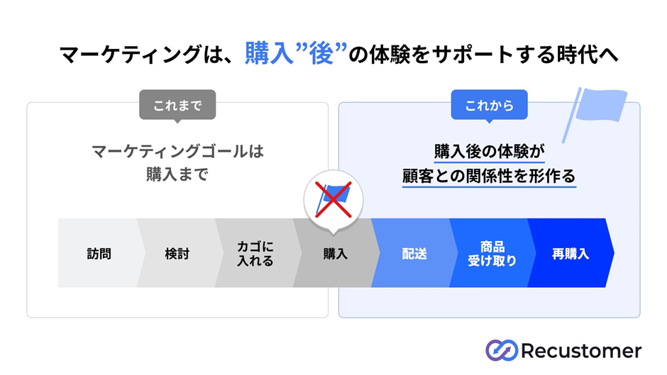 これまでのEC業界では、「購入された瞬間」をゴールの1つと捉え、購入数やコンバージョン率を指標に、購入前のファネルを最適化することに注力してきました。しかし、顧客にとって選択肢が溢れる現代では、商品が購入された瞬間が「終わり」ではなく、むしろ「はじまり」であるという認識が広がってきています。