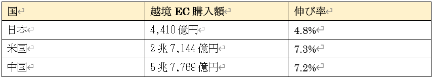 越境ECも堅調に拡大しています。2024年における中国消費者による日本事業者からの購入額は2兆6,372億円(前年比8.5%増)、米国事業者からの購入額は3兆1,397億円(前年比6.0%増)でした。
