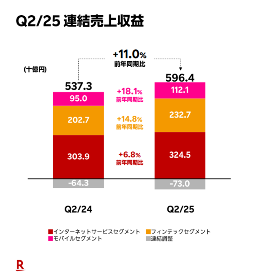 楽天グループの2025年第2四半期決算を受け、インターネットサービスセグメント全体の業績は前年同期比で堅調に推移しているものの、前四半期からの伸び幅は限定的であり、大きな成長加速は見られませんでした。このような状況下では、ユーザー数の拡大やユーザーあたり年間購買額(ARPU)の上昇が、今後の成長を支える鍵となります。
