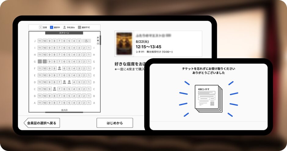 Shopifyを中核に据え、チケット在庫・売上・顧客データを一元化。実店舗ではWebアプリでShopifyと連携するセミセルフ方式のキオスク端末を設置し、その場で会員認証を行い、チケットや座席の指定から決済までを可能にしたことで、対応に割くスタッフ数の削減を実現しました。あえてセミセルフ方式にすることで、顧客とのつながりを維持しつつ過度な接触を避け、適切なコミュニケーションが取れる接点を残しました。