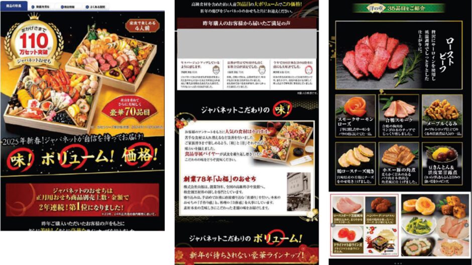 問題の中心は、同社の公式通販サイトで販売された2025年正月用の「特大和洋おせち2段重」です。