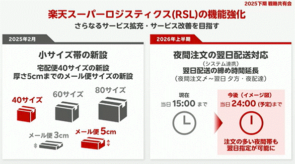 2026年上期には、当日15時締切だった出荷基準が24時までに延長予定。Amazonの配送水準に一歩近づく形となり、ユーザーの“翌日届く”期待値に応える取り組みが本格化します。