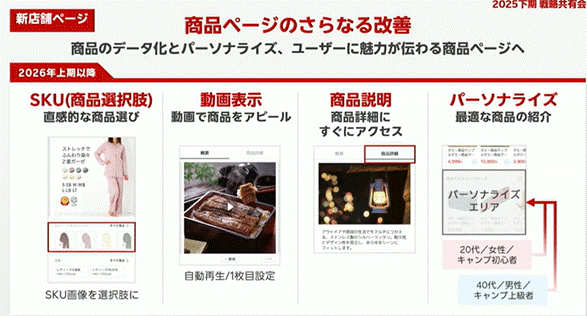 楽天市場アプリ内におけるフィード表示の強化に伴い、動画コンテンツの重要性がさらに増しています。TikTokやInstagramとの連携を想定したショート動画の制作・活用が求められます。