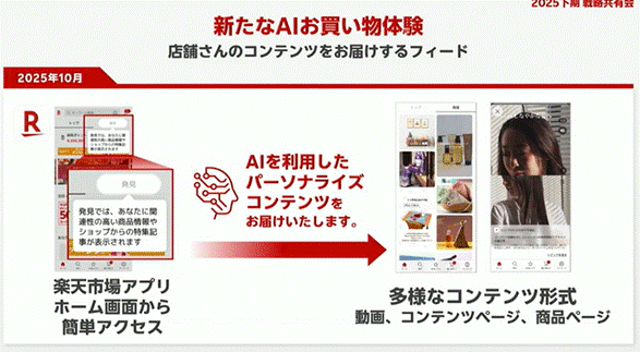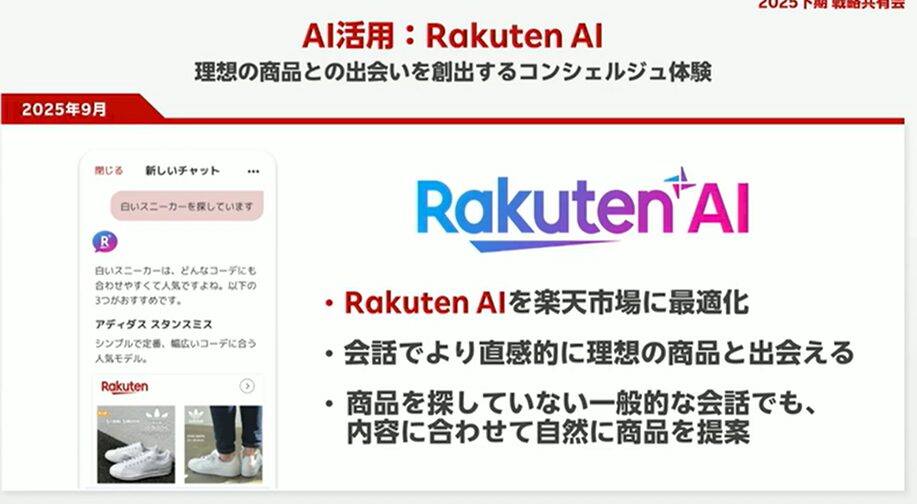 下期以降は、会話型UIによる商品探索も本格化します。Amazonでも導入されているチャット型の検索体験を楽天でも強化していく方針で、ユーザーの目的に応じた商品提案の精度向上が課題です。