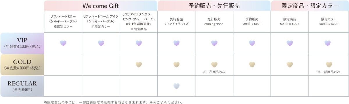 これらのリスクから、ReFaのハートデザインアイテムを真に愛するファンを守り、「日常にもっとハートのときめきと彩りを届けたい」という想いから、このファンクラブが新設されることになりました。Club Airaという名称には、ファンの皆様に「愛が来る(Aira)」ようにという願いが込められており、多数の限定商品や先行商品が用意されています。