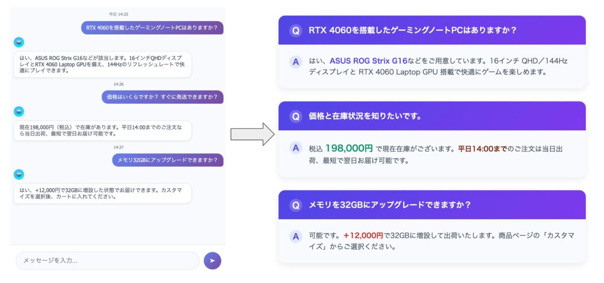 新たな会話があるたびにFAQは更新され、顧客は新商品の情報や季節に応じたニーズ、トラブルシューティングの事例といった内容をリアルタイムで反映されることになります。