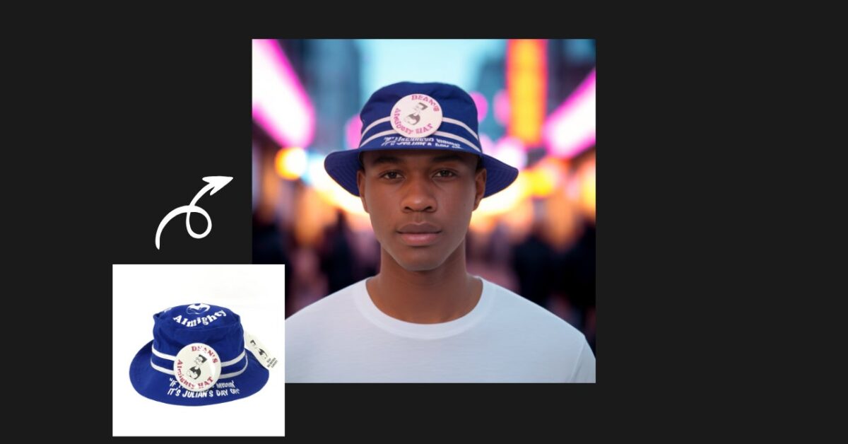 人物画像と商品画像の両方をアップロードすると、AIがその人物に商品を着せたような着用イメージやバリエーションを自動生成します。これにより、特定のモデルやインフルエンサーに商品を着せたイメージを簡単に作成することができます。