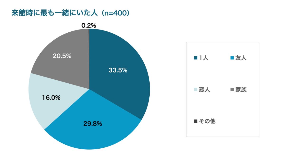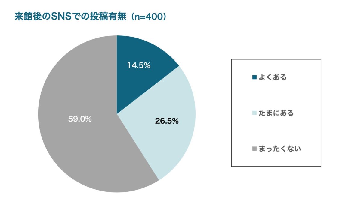 - 同伴での来館が全体の6割を超え、SNS投稿経験も一定数(41.0%)存在することから、誰かと共有したくなる体験が来館行動を後押ししていることが明らかになっています。
