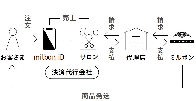 こうした双方の課題を解決するために誕生したのがmilbon:iDです。このサービスにより、お客様は商品購入を即決する必要がなくなり、美容師からの提案をもとに、来店していない時でも自由に商品を購入できるようになりました。また、ストアの運営・受注・物流業務をミルボンが担うことで、美容室は業務負担なく新たな収益機会を得られるようになっています。