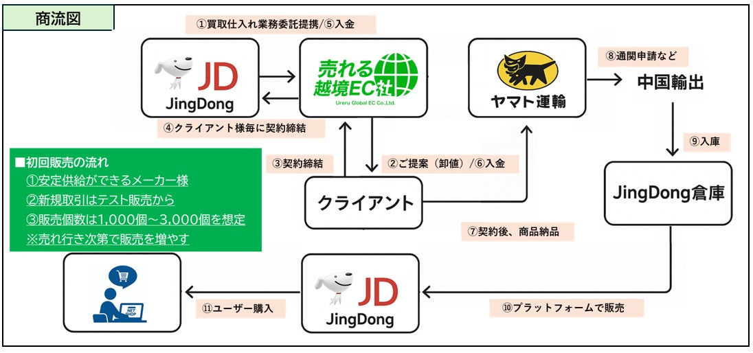 今回開始するサービスの核心は、売れる越境EC社が日本国内の優良メーカー・ブランドから商品を買取仕入れし、その商品をJD.comプラットフォーム上で中国消費者に販売するというシンプルながら革新的なモデルです。