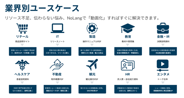 このほかにも、幅広い業界でNoLangを活用することができます。