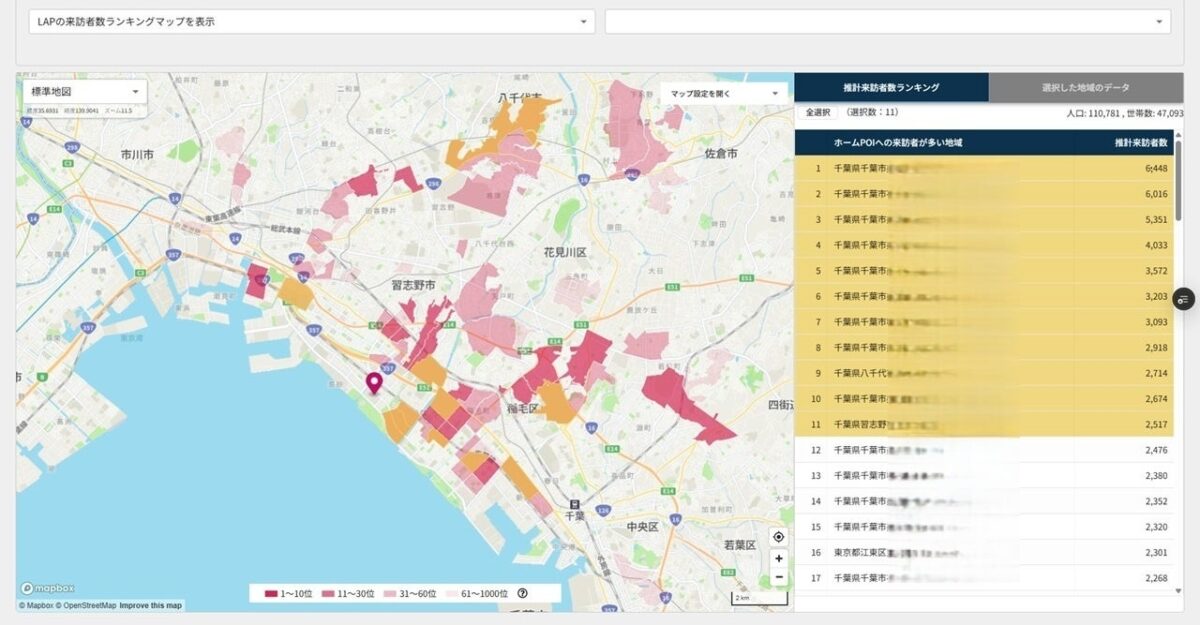 店舗やエリアの来訪者を分析し、来訪率の高さや来訪数の多さを基に、オーディエンスを生成いたします。