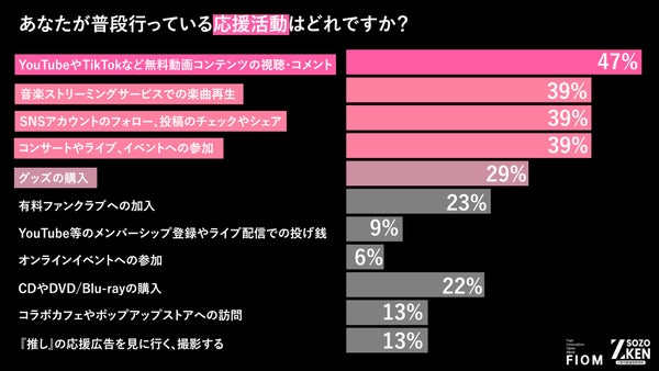 応援は「金」より「拡散」。Z世代の応援活動の1位は「無料動画の視聴・コメント」(47%)