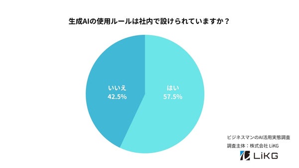 社内のAI活用に関するルールの有無については、過半数の企業で何らかのAI利用ガイドラインが整備されている一方で、約4割の企業ではまだ明確なルールが設けられていないことも明らかになっています。