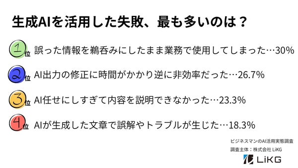 3人に1人がAI活用で失敗も9割以上が今後も継続意向、LiKGの生成AI業務活用実態調査