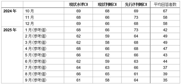 ※本指数では、平均回答者数が50を下回る期間に対応した算出値は、参考値として扱われています。