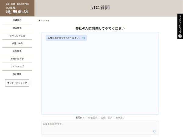 - サービス名: 仏壇屋 滝田商店 AIアドバイザー