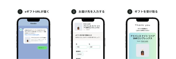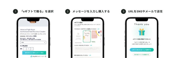 AnyGiftは、送り先の住所を知らなくてもLINEやメールを通じて贈ることができる"eギフト機能"をECサイトに実装可能なサービスです。今回の導入により、「エスティ ローダー公式オンライン ショップ」を利用する顧客は、相手の住所情報がなくてもギフトを贈ることができるようになりました。
