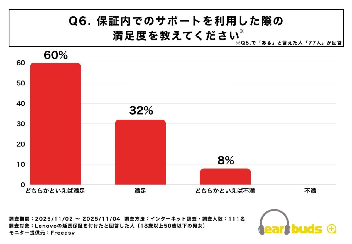 Q6:保証内でのサポートを利用した際の満足度を教えてください